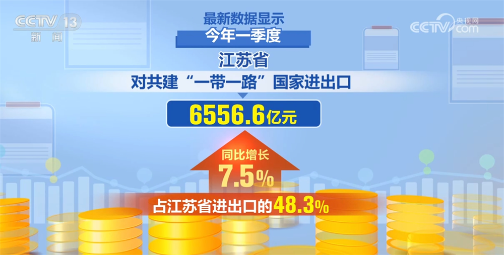 最新数据显示,本年一季度,江苏省对共建“一带一”国度进出口6556。6亿元,占江苏省进出口的48。3%。