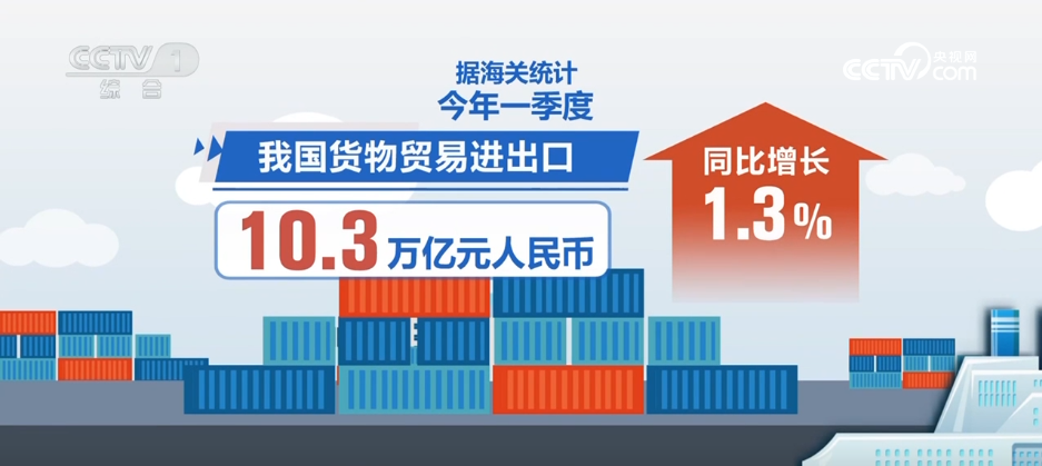 据海关统计,本年一季度,我国货色商业进出口10。3万亿元人平易近币,同比增加1。3%。此中,出口6。13万亿元,增加6。9%;进口4。17万亿元,下降6%。一季度,我国进出口规模创汗青同期新高,持续8个季度超10万亿元。从月度走势看,1月份进出口下降2。2%,2月份根基持平,3月份增加6%。